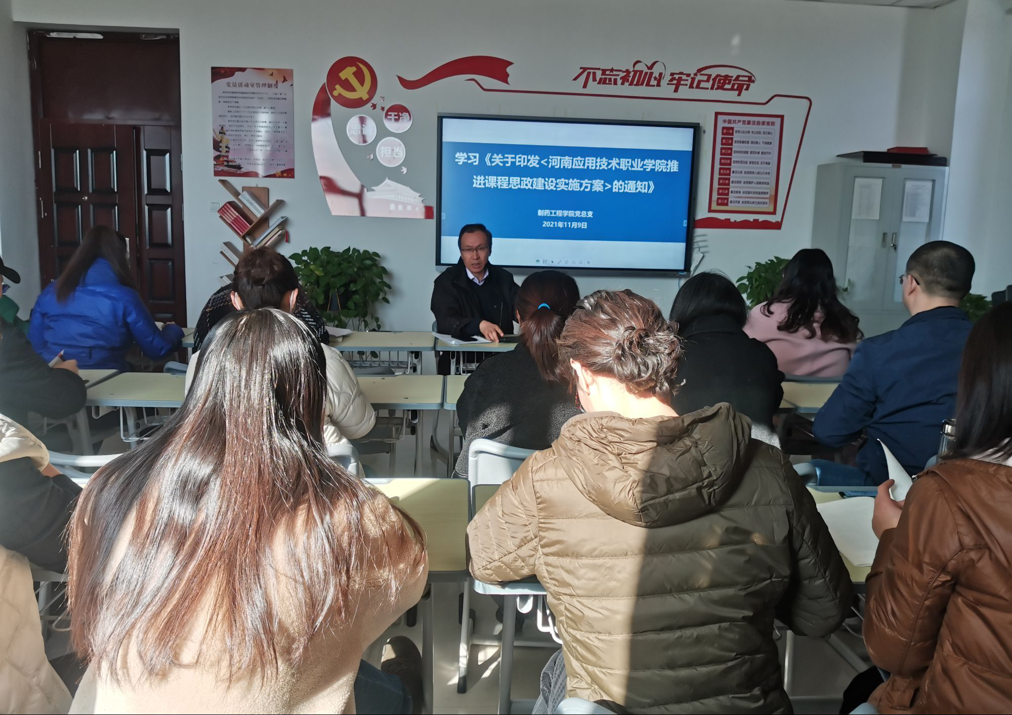为充分发挥课堂主渠道在学校思想政治工作中的重要作用,切实把思想政治教育贯穿人才培养体系全过程,全面推进米兰官网课程思政建设,提高课程思政育人作用,根据学校工作安排,制药工程学院党总支于2021年11月9日下午2点在501党员活动室,组织学习《米兰milan官方网站推进课程思政建设实施方案》。制药工程学院党总支副书记韩恩远主持会议,党总支全体教职工参会。