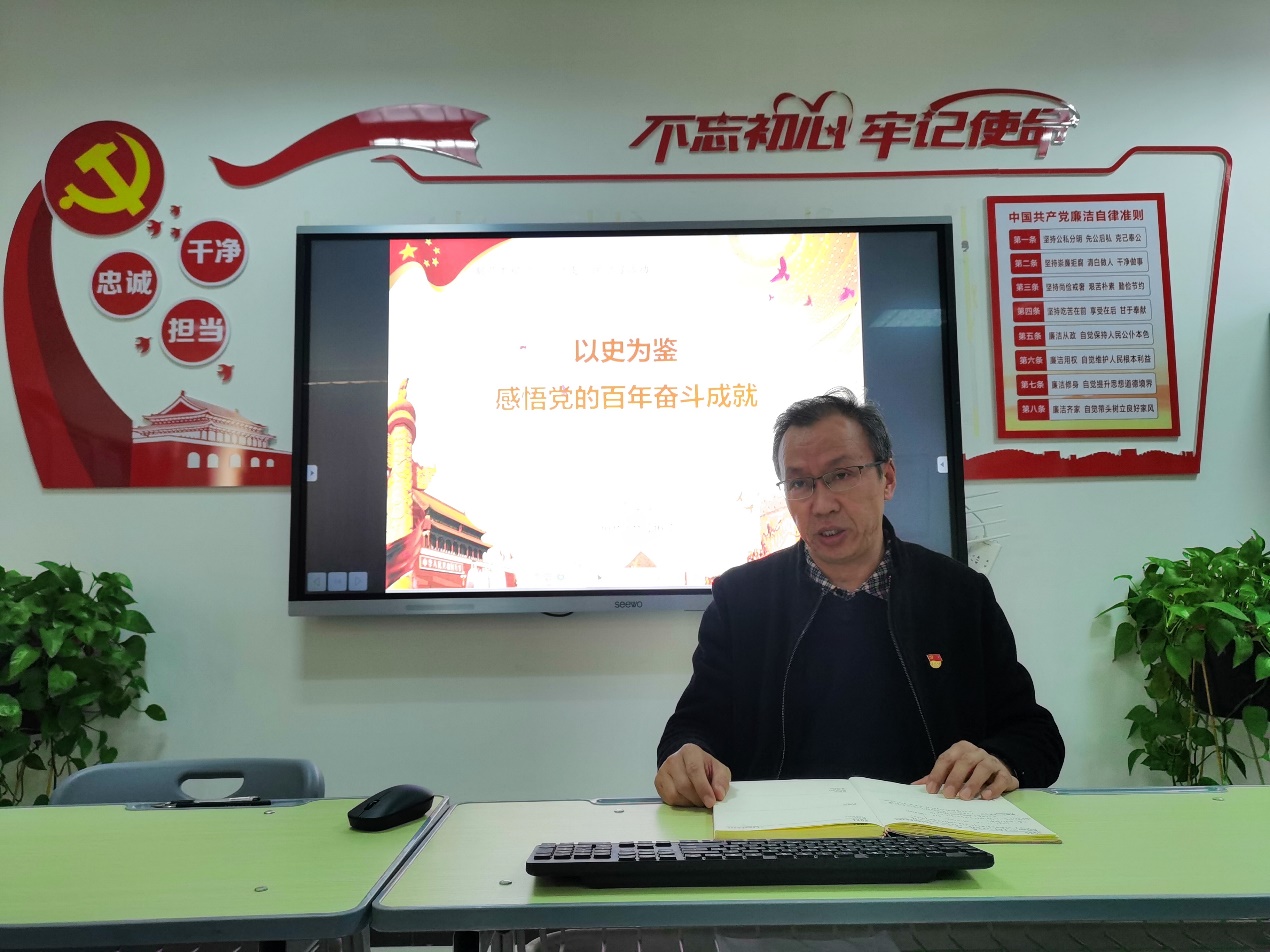 窦传斌在党课上指出,通过学习党在百年奋斗取得的成就,严格要求自己,答好时代给我们出的考卷,创造新的成就,不负时代、不负人民。