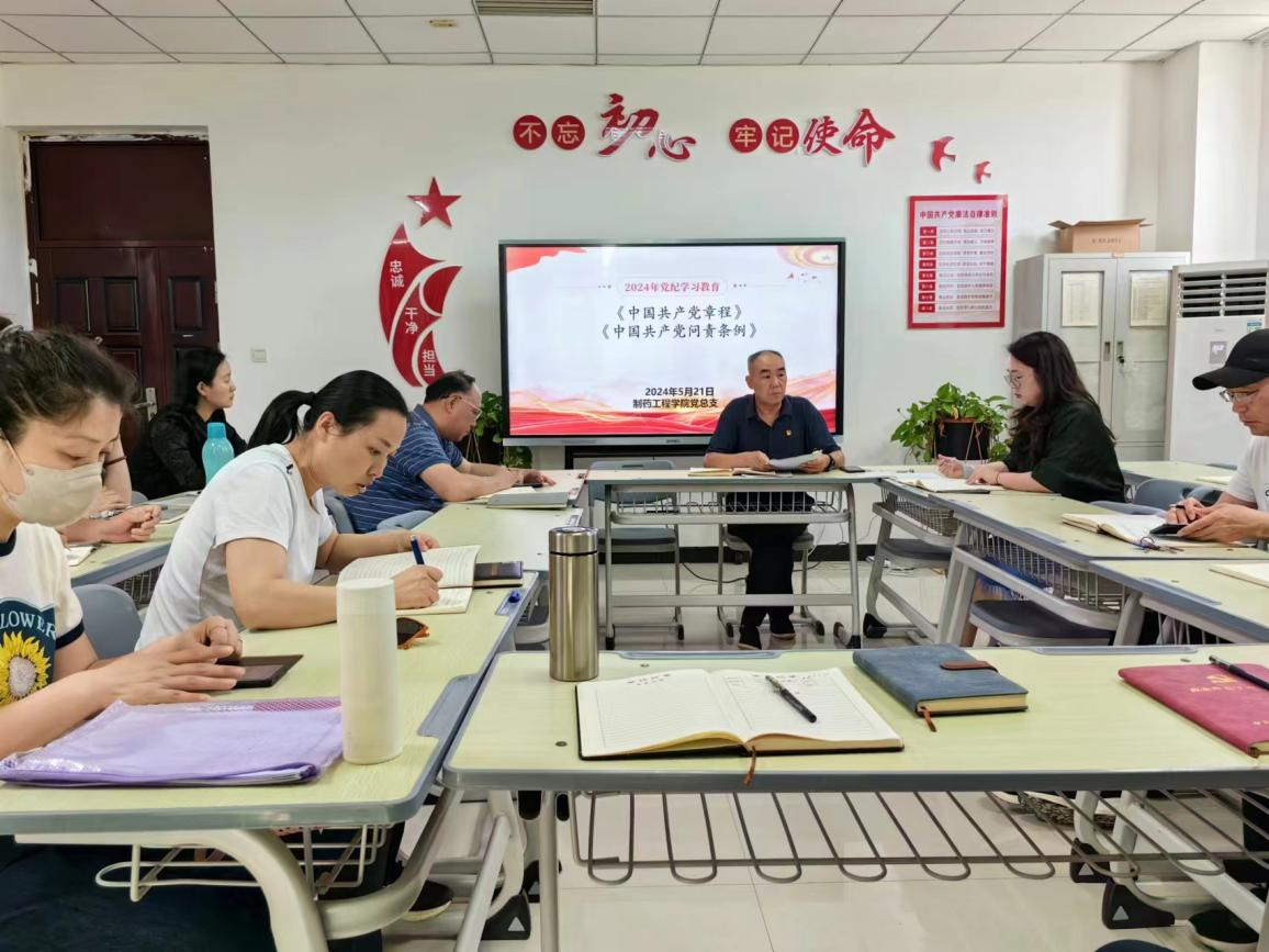 根据学校党委宣传(统战)部安排,制药工程学院党总支于2024年5月21日下午在301党员活动室开展政治理论学习专题会,会议由学院党总支书记窦传斌主持,全体教职工参加学习。