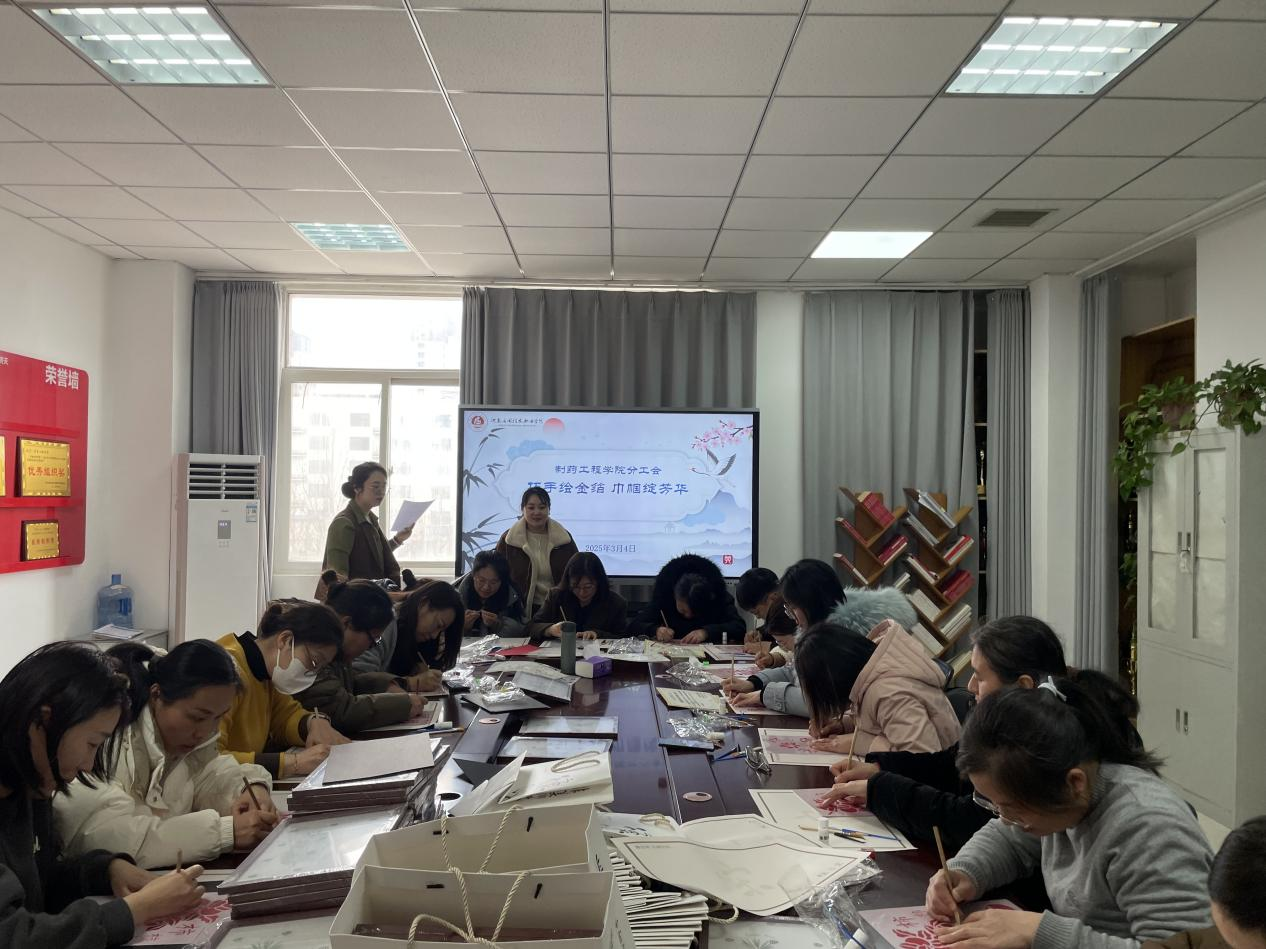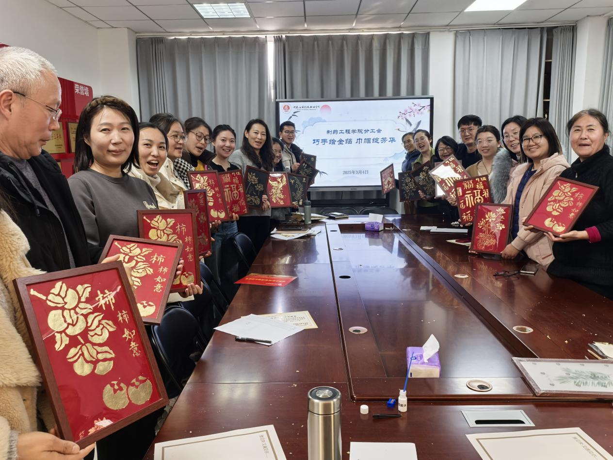 为庆祝三八妇女节,丰富学院教师的精神文化生活,传承弘扬非物质文化遗产3月4日下午,制药工程学院工会在301活动室组织全院教职工开展“巧手绘金箔 巾帼绽芳华”金箔画制作活动。