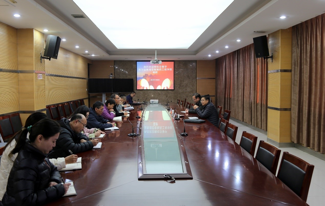 2021年11月26日上午,米兰milan官方网站总督学苏万益、质量发展处副处长李杰莅临制药工程学院开展调研,并与学院领导及部分教师代表座谈。