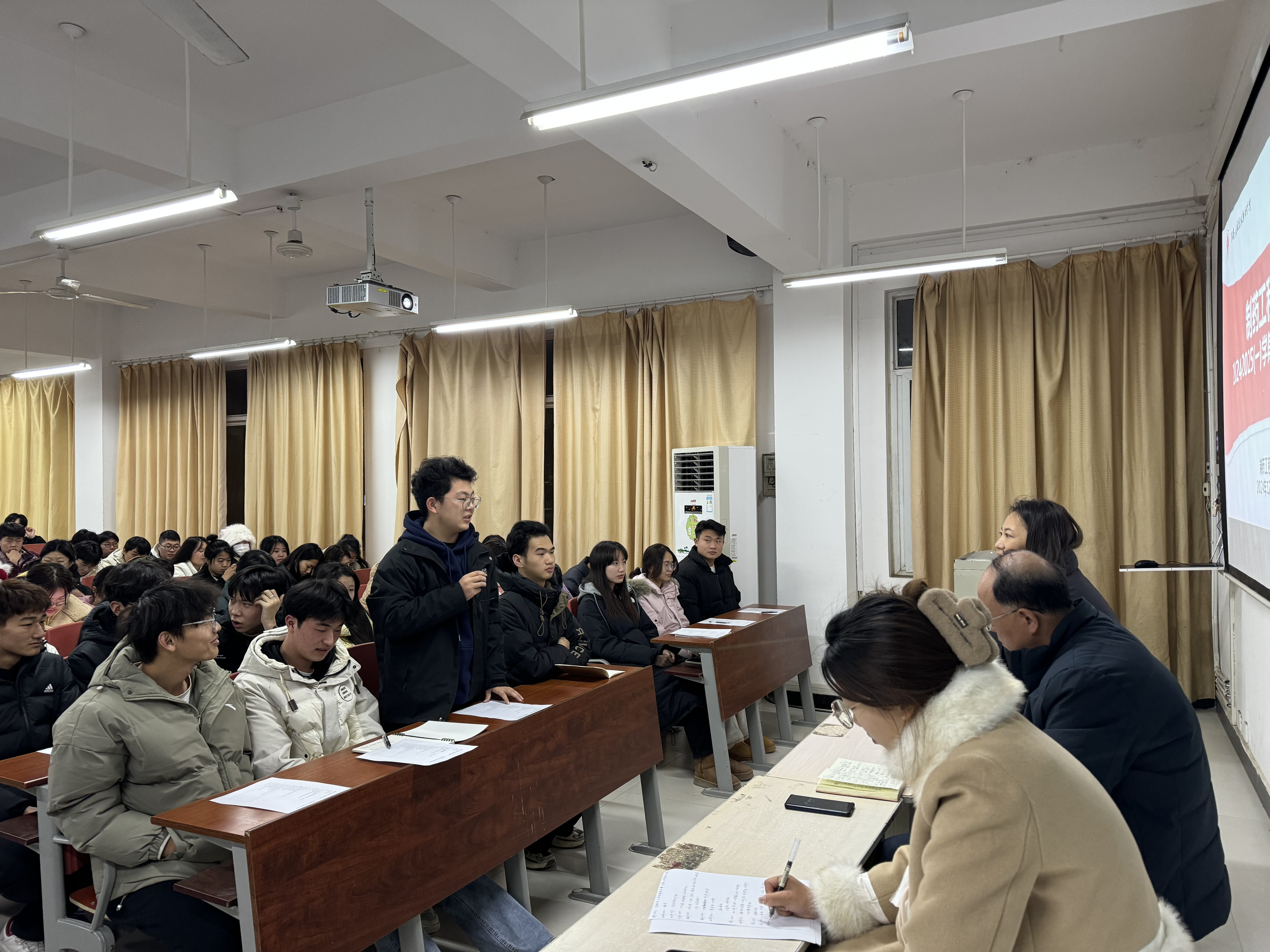 2024年12月19日下午5点40分,制药工程学院在教学楼102召开了本学期学生座谈会。本次会议旨在深入了解学生对教师授课情况的反馈,收集学生对“金课”与“水课”的看法,并广泛征集对教师的意见和建议。会议由学院院长吕玮主持,副院长高莉丽、学院办公室郑嘉溢老师以及43个班级的129名学生代表参加了此次座谈会。