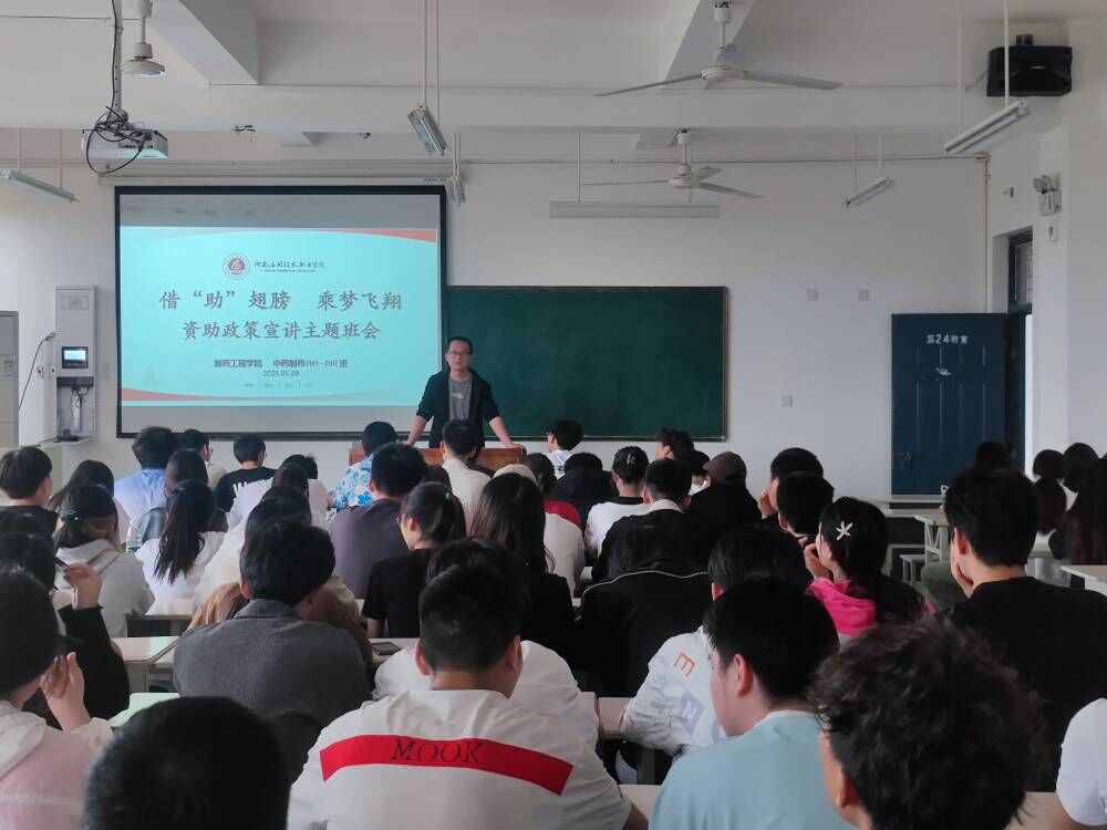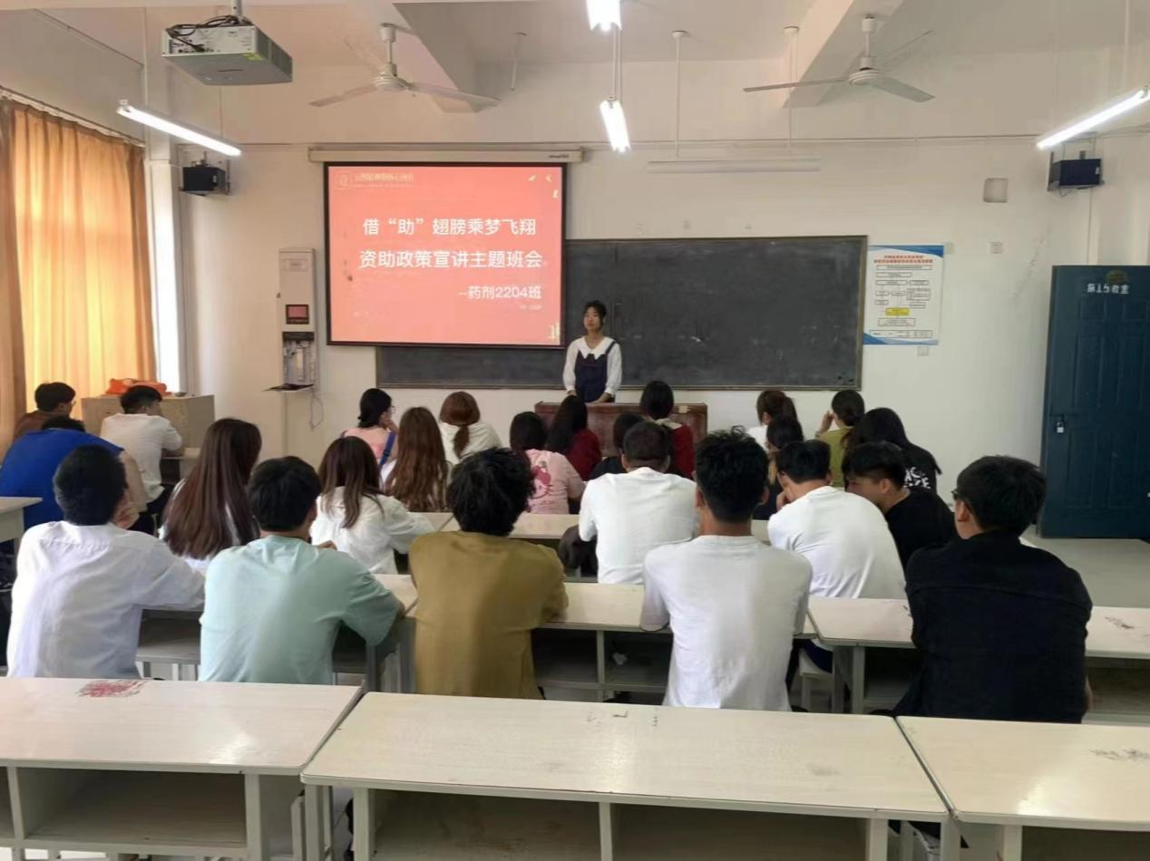 为使同学们更好的了解学校资助政策,推进米兰官网资助工作平稳有序进行,根据学校整体工作安排,2023年5月9日-10日,制药工程学院21级、22级各班开展以“借“助”翅膀,乘梦飞翔”为主题的资助政策宣讲。