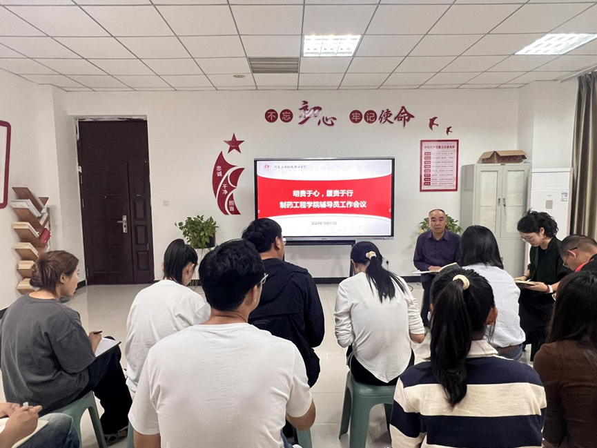 为进一步加强米兰官网辅导员队伍专业化职业化建设,着力提升年轻辅导员的职业素养和岗位适应力,10月11日下午制药工程学院在办公楼301会议室召开辅导员工作会议,学院全体专兼职辅导员参加会议,会议由制药工程学院党总支副书记白小茗主持。