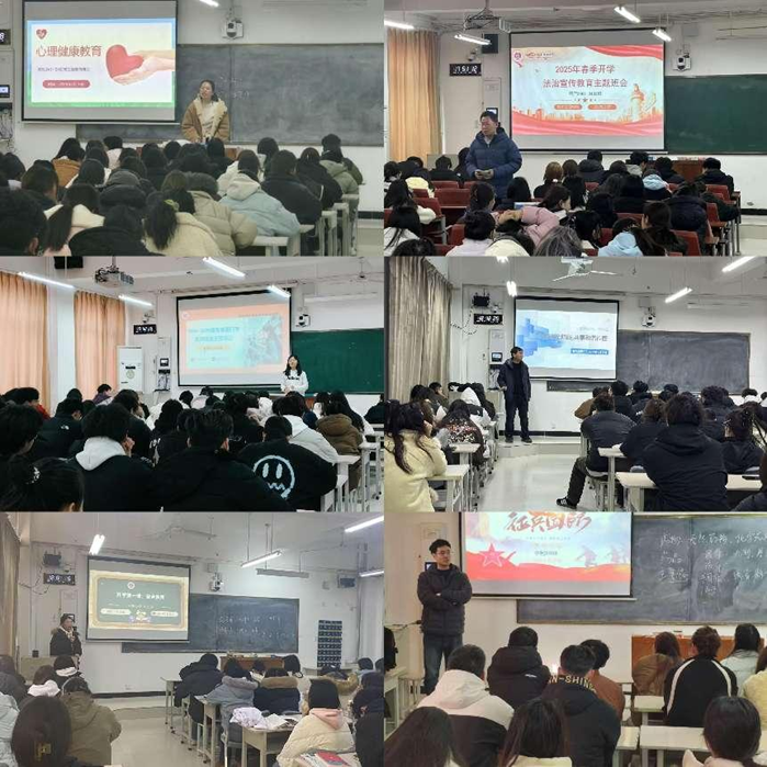 24 级辅导员围绕“安全教育”“大学生心理健康”“征兵宣传”“法治教育”四个主题展开。在“安全教育”主题中,辅导员结合校园实际案例,详细讲解安全知识,切实提高学生的安全防范意识;“大学生心理健康”主题班会上,引导学生正确面对心理压力,掌握心理调适方法;“征兵宣传”主题班会激发了学生的爱国情怀,对征兵政策和流程进行细致解读,鼓励学生踊跃报名;“法治教育”主题班会通过剖析典型案例,讲解部分法规,增强了学生的法治观念。