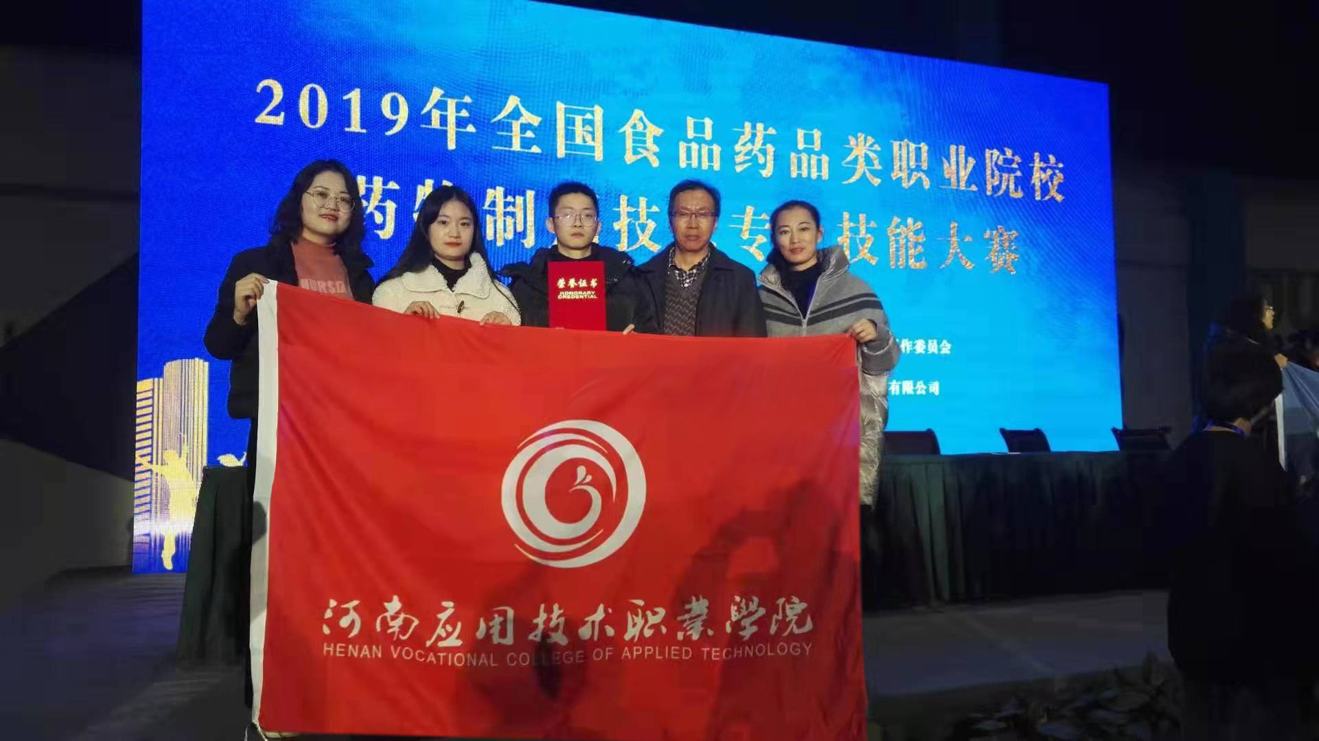 2019年12月22日晚,为期3天的“2019年全国食品药品类职业院校‘药物制剂技术’专业技能大赛”在江苏泰州落下帷幕,米兰官网制药工程学院高莉丽老师和史真老师指导的赵宣宣、李欣浩两名同学以总分第10名的优异成绩荣获团体二等奖。