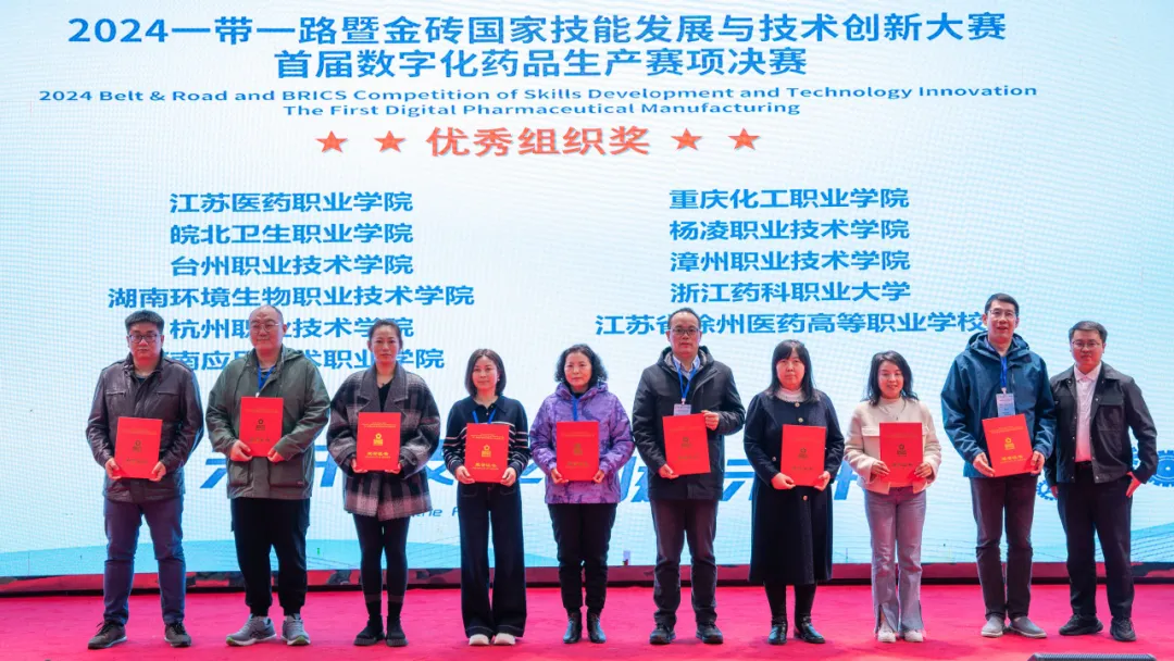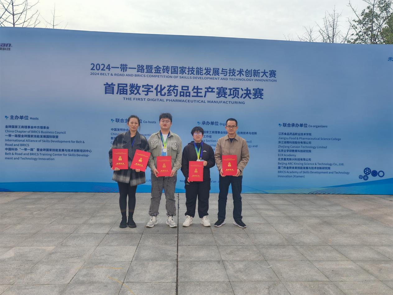 11月16日至19日,由金砖国家工商理事会中方理事会、一带一路暨金砖国家技能发展国际联盟、中国科协“一带一路”暨金砖国家技能发展与技术创新培训中心主办,中国发明协会、教育部中外人文交流中心联合主办,金砖国家工商理事会技能发展、应用技术与创新中方工作组承办,江苏食品药品职业技术学院、浙江迦南科技股份有限公司、北京企学研教育科技研究院、北京嘉克新兴科技有限公司、厦门市金砖未来技能发展与技术创新研究院等联合承办单位精心组织的2024一带一路暨金砖国家技能发展与技术创新大赛之首届数字化药品生产赛项决赛在江苏食品药品职业技术学院举办,来自全国56支参赛队伍、112名参赛选手现场同台竞技。