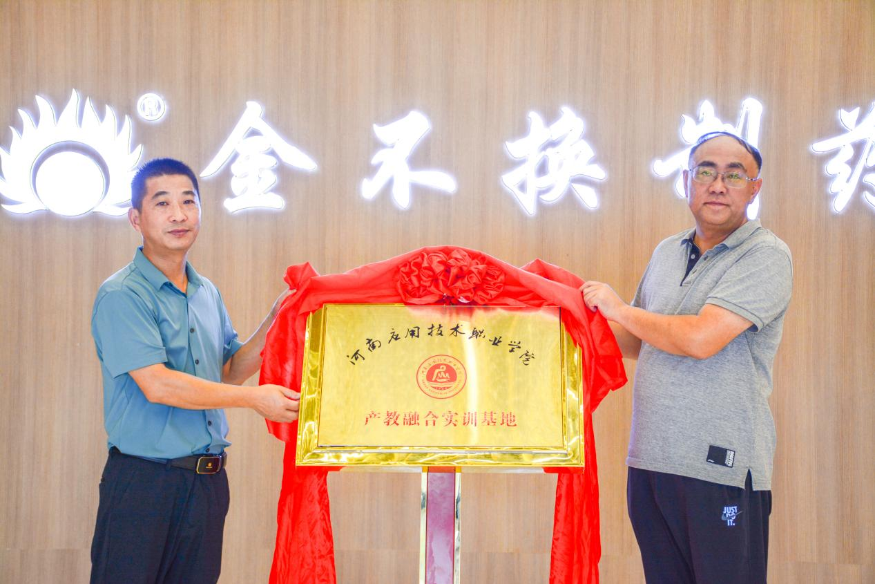 2023年8月11日,制药工程学院产教融合实训基地和教师企业实践流动站签约揭牌仪,在上海金不换兰考制药有限公司顺利举行。制药工程学院院长吕玮与金不换药业公司董事长丁龙,共同为产教融合实训基地和教师企业实践流动站揭牌。校企合作与就业处副处长梁艳以及金不换制药部分领导参加了揭牌仪式。