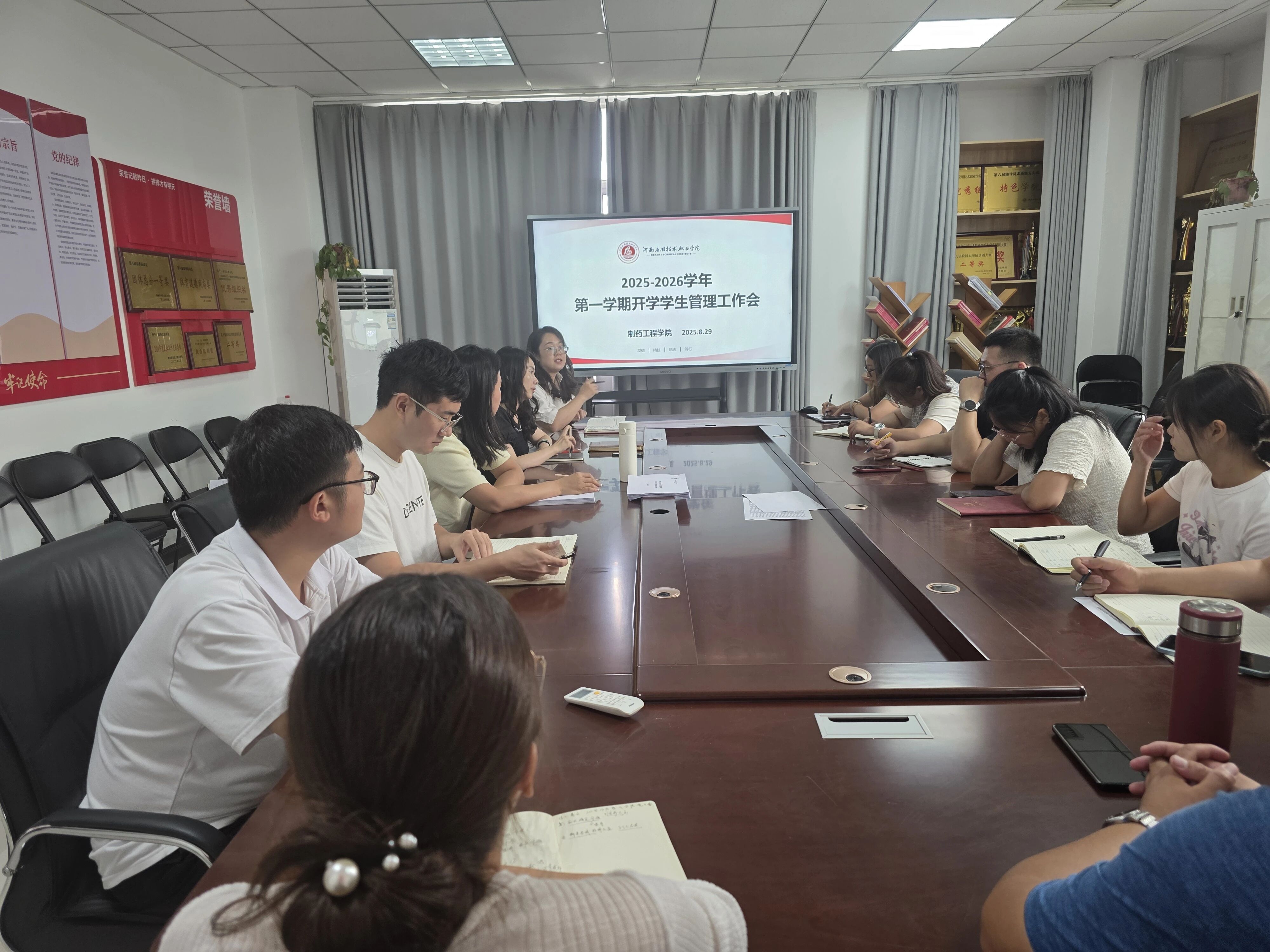 2025年8月29日上午,制药工程学院在301党员活动室组织召开2025-2026学年第一学期开学学生管理工作会议。会议由学院党总支副书记白小茗主持,全体辅导员参会,会议围绕新学期学生管理各项重点工作进行了全面部署。