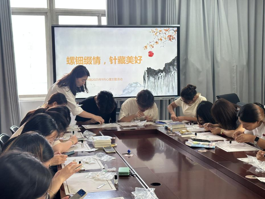 为助力学生释放学业压力、传承中华优秀传统文化,9月16日,米兰milan官方网站在南院办公楼301举办“螺钿缀情,针藏美好”心理主题活动。学院学生积极参与,在非遗工艺的创作体验中舒缓情绪、收获成长。