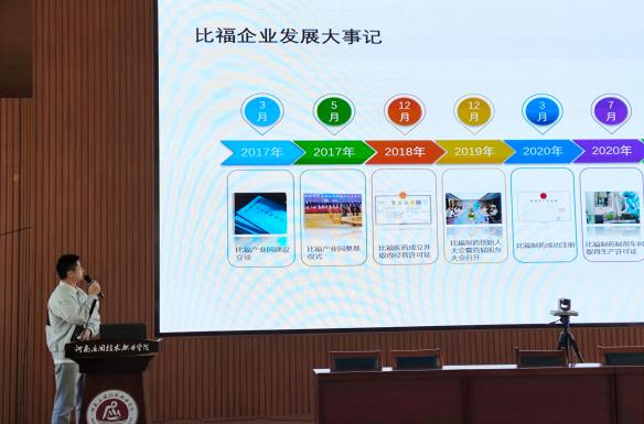 宣讲会开始之前,邢星向参会学生介绍了各个企业的基本情况,代表学院对企业的到来表示热烈欢迎。随后,由恒瑞药业人事经理刘国飞、比福制药人事经理韩阳光、普洛药业人事经理杨倩分别介绍了各自公司的发展历程和企业目标,对同学们最关心的薪资待遇、应聘要求、工作环境等问题也进行了重点说明。三家企业宣讲完毕后,白小茗对本次宣讲会做出总结。她指出同学们一要牢记习近平总书记对青年的嘱托,做脚踏实地的行动者,敢想敢为又善作善为;二要充分结合个人情况,找准个人定位,明确岗位方向;三要仔细慎重,充分应对,以最好的姿态和面貌应对实习就业环节。